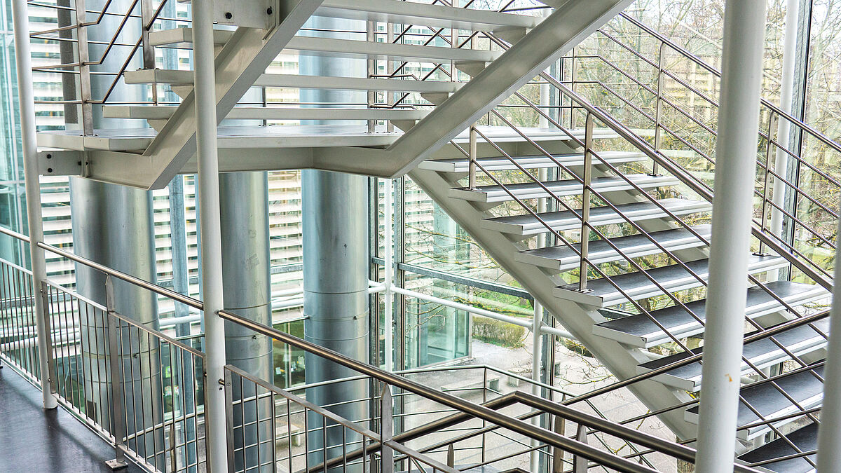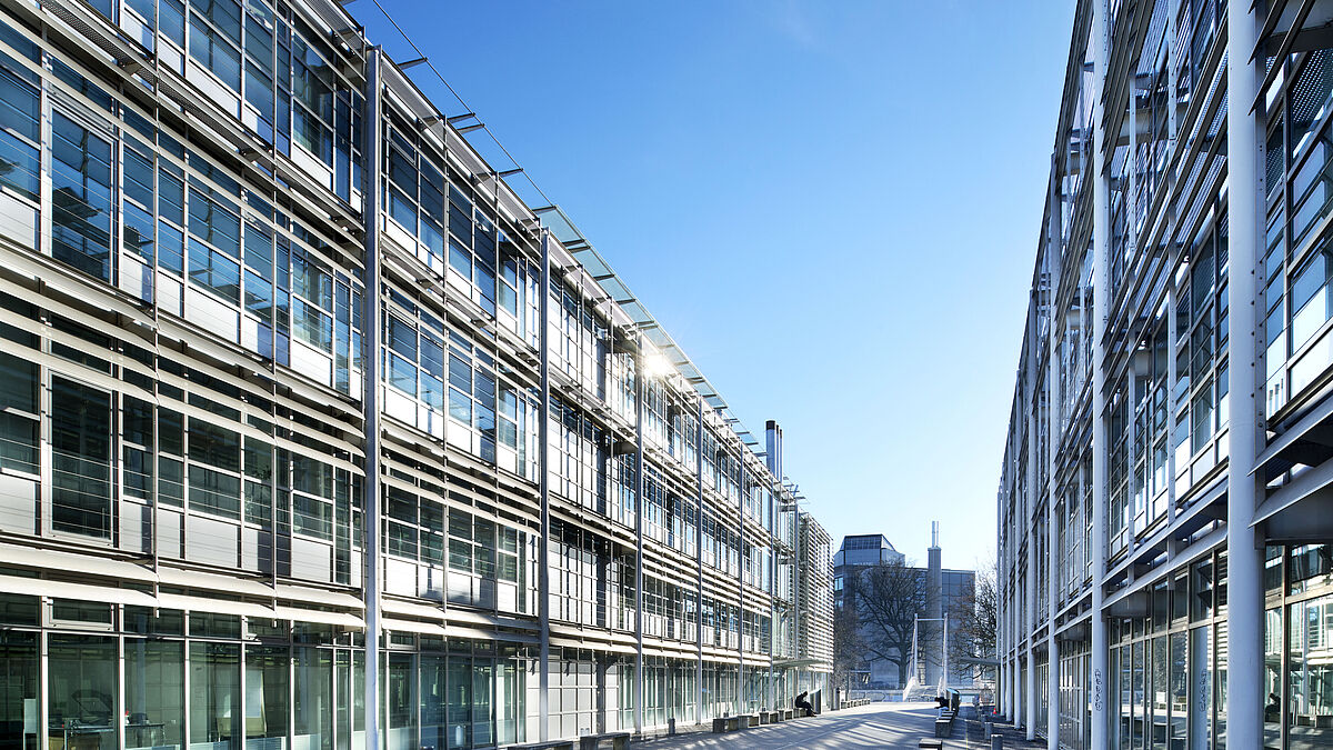 Der Architekt des Campus, Frank Geiser (1935–2024), galt als einer der bekanntesten Vertreter des Schweizer Stahlbaus. «Heute, wo alles offengelegt wird, muss ein öffentlicher Bau einen entsprechenden Ausdruck haben», war Geiser überzeugt. Das Glashaus hinter den Bäumen erweist sich als raumbindende Architektur. Freiräume sind in diesem Konzept keine Leerräume, sie übernehmen klare Aufgaben. Sie binden ein und vermitteln zwischen Elementen, die sich eigentlich unversöhnlich gegenüberstehen müssen. Alt und Neu, Glas und Mauer, Gebäude und Natur stehen sich respektvoll gegenüber.