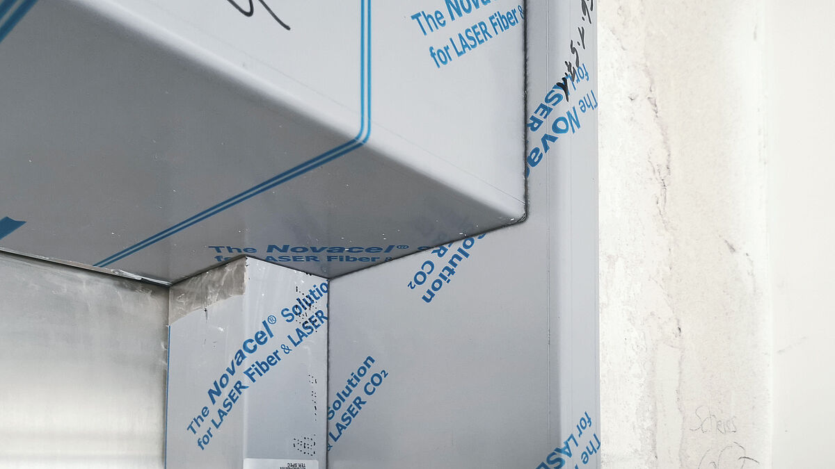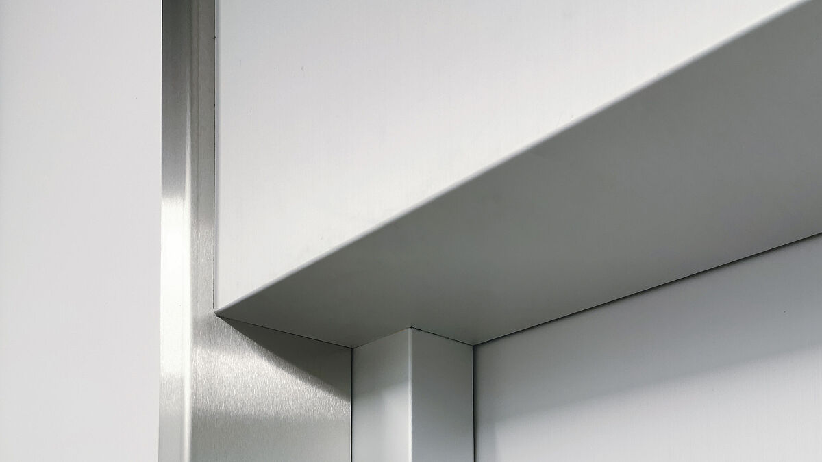 Ein besonderes Detail sind die Sturzverkleidungsbleche. Sie wurden eingehängt und kommen ganz ohne sichtbare Schrauben aus. Das verstärkt die gewünschte architektonische Reduktion und bringt visuelle Ruhe in den Liftzugang. Die Linie der Fassade wird damit über die Lifttür hinaus weitergeführt – ein kleines, aber wirkungsvolles Element.