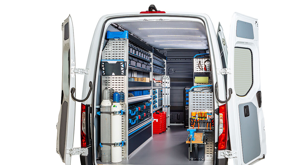 Liefer- und Montagefahrzeuge bis 3,5 Tonnen bieten heute vielfältige Möglichkeiten für individuelle Innenausbauten. Ziel ist es, das Fahrzeug optimal an die branchenspezifischen Anforderungen anzupassen. Der Mehrwert entsteht durch ein durchdachtes Gesamtkonzept. Professionelle Anbieter unterstützen bei Planung und Umsetzung. Die meisten Systeme sind modular, weitgehend markenunabhängig und nachrüstbar. Bewährte Elemente sind Seitenwände, Regalsysteme für Kleinteile, verriegelte Werkzeugschubladen, Halterungen für Maschinen sowie Arbeitsflächen oder Schraubstöcke für Anpassungsarbeiten vor Ort. Bei Kastenwagenformen bewährt sich häufig ein doppelter Boden. Da die volle Innenraumhöhe selten genutzt wird, schafft er zusätzlichen Stauraum für Leitern, Profile oder Kabel und sorgt gleichzeitig für Übersicht und Ordnung im Arbeitsbereich.