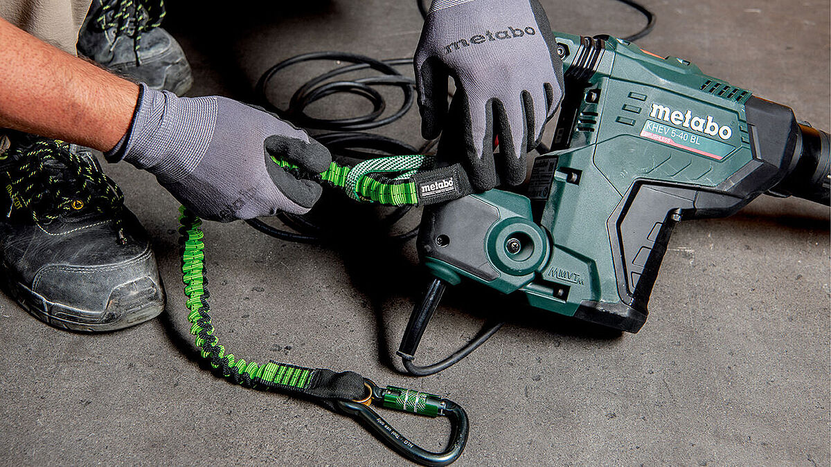 Werkzeuge können herunterfallen und Schaden anrichten. «Schon ab einer Höhe von zwei Metern und einem Gewicht von 500 Gramm kann ein Mensch durch ein herabfallendes Werkzeug ernsthaft verletzt werden», sagt Alexandra Haas, Produktmanagerin bei Metabo. Um Profis vor Verletzungen und Werkzeuge vor Schäden zu schützen, bringt Metabo ein neues Sicherungssystem mit drei Werkzeug-Sicherungsgurten für unterschiedliche Belastungen auf den Markt.