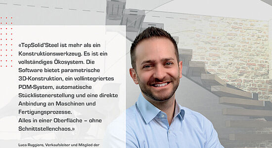 TopSolid’Steel gilt als eine der führenden CAD/CAM-Komplettlösungen für den Metall- und Stahlbau. In der Schweiz wird die Software von der TOPSOLID Switzerland AG mit Sitz in Cham vertrieben und weiterentwickelt. Wir haben mit Luca Ruggiero, Verkaufsleiter, über aktuelle Entwicklungen, Kundenbedürfnisse und das neue Update TopSolid 7.19 gesprochen.