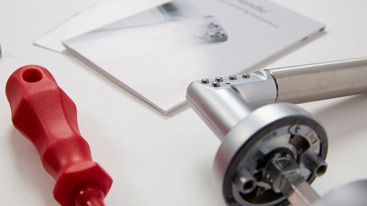 La poignée Code Handle® fonctionne avec une pile et est facile à monter. Deux vis suffisent pour installer le système sur presque chaque porte intérieure. Pas besoin de câbles ni d’alimentation électrique. Les portes existantes équipées des garnitures usuelles peuvent être équipées a posteriori, car Code Handle® utilise le dispositif de fermeture existant: seule la poignée doit être changée, pas les cylindres ni les serrures. Il n’est pas nécessaire d’installer un système complexe.