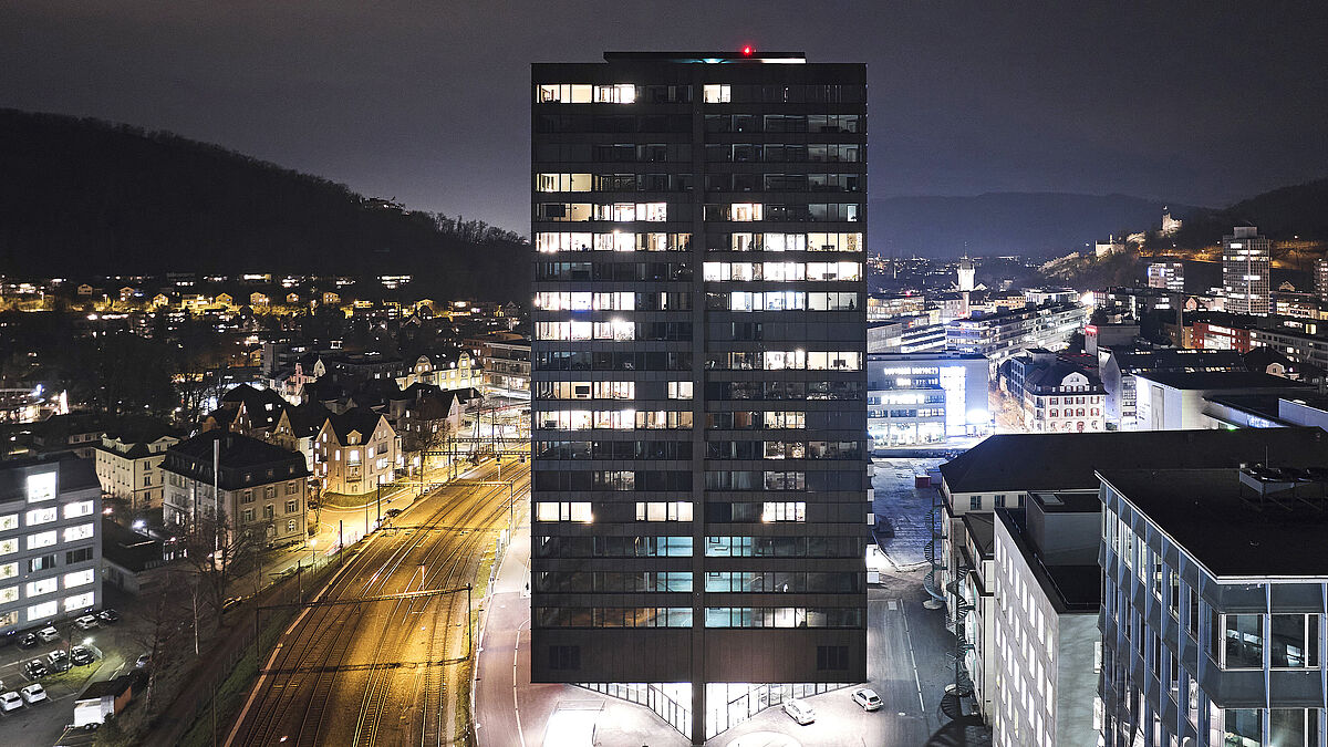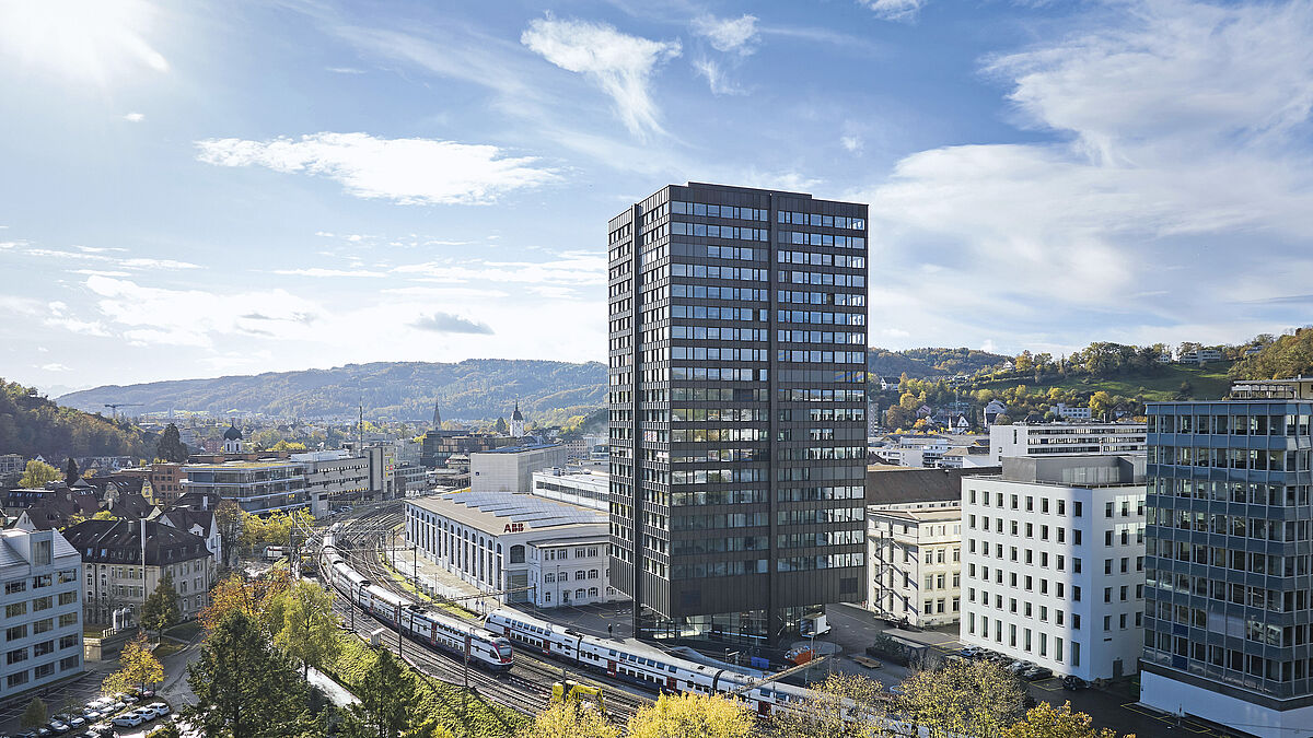 L’Akara Tower, une construction Minergie qui a vu le jour sur l’ancien site d’expédition d’ABB et bénéficie d’une situation privilégiée en termes de transports, est un parfait exemple de cette transformation : la gare de Baden ne se trouve qu’à cinq minutes à pied et l’autoroute A1/A3 est accessible en sept minutes environ.