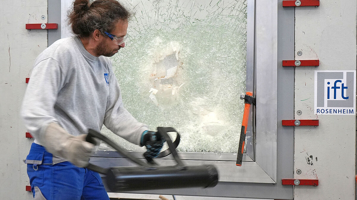Selon l’ift Rosenheim, le vandalisme, et de plus en plus le sabotage, représentent des risques élevés pour les bâtiments publics, les infrastructures de transport ou les bâtiments administratifs. Le comportement des vandales est très différent de celui des cambrioleurs selon Jürgen Benitz-Wildenburg, ingénieur diplômé et responsable RP et communication technique à l’ift Rosenheim : « Les vandales agissent ouvertement, souvent impulsivement et avec des outils improvisés : pavés, panneaux de signalisation ou plaques d’égouts utilisées comme béliers. Les éléments de construction et les vitrages à risque doivent donc être résistants aux attaques violentes directes et pas seulement aux discrètes actions des cambrioleurs. Les éléments de construction anti-effraction ne sont que partiellement adaptés. » L’ift Rosenheim a donc élaboré avec un groupe d’experts la directive ift EI-06/1 relative au vandalisme, qui définit la procédure type, les outils, les processus reproductibles et les classes de risque possibles. Le contrôle manuel de la résistance au vandalisme d’un élément monté prêt à l’emploi (avec ferrure, cadre, vantail de porte, serrure, vitrage, etc.) à l’aide de différents outils est décisif : c’est la durée de la résistance qui compte. L’exigence supplémentaire « LS (Liquid Save) » est aussi importante, puisque les examinateurs essaient alors de créer dans l’échantillon une ouverture suffisamment grande pour pouvoir y passer une bouteille (cocktail Molotov). L’objectif est de mieux protéger les bâtiments et les personnes contre la destruction délibérée et la violence dans les espaces publics et dans les lieux très fréquentés et vulnérables.
